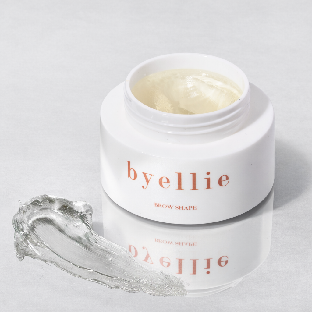 Using the byellie “Brow Brush” take the comb end and glide the brow shape through your brows to gently spread and shape the brow hair for that slicked-to-skin effect.
